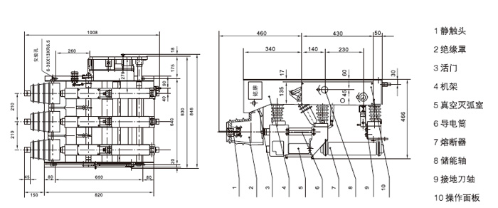 FZRN25-12D/125-31.5 真空負荷開關-熔斷器組合電器外形及安裝尺寸